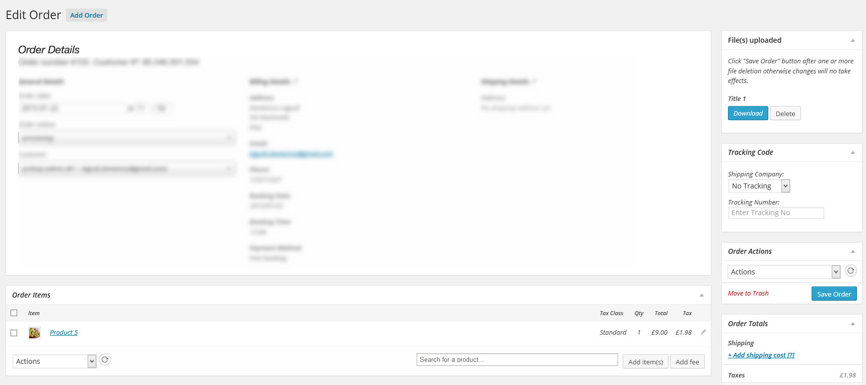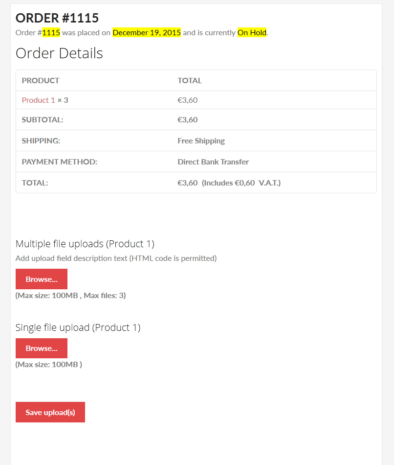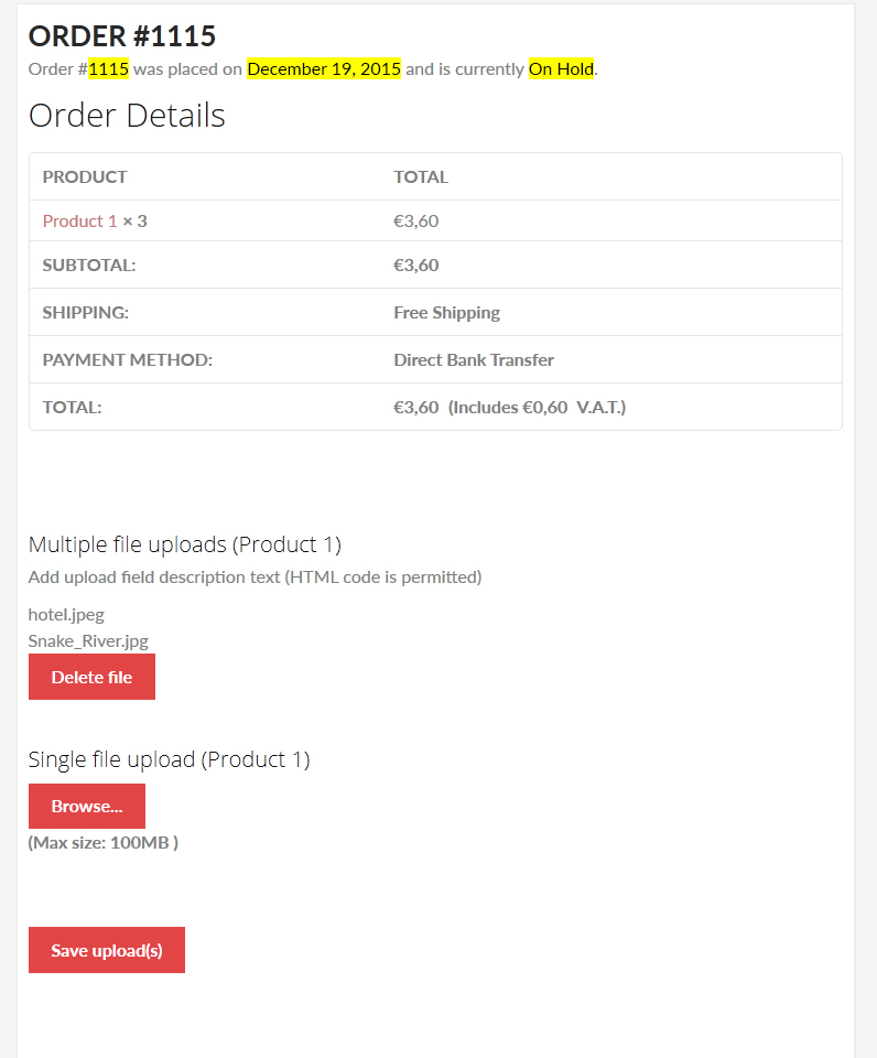 In Order detail page, WCUF will add a "File(s) uploaded" box in the left of the page. By this box you will be able to download or delete every
